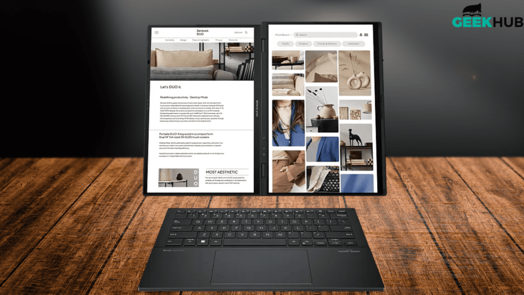 The new Intel Core Ultra 9 processor is a real statement from Asus, a 20% increase in performance compared to the previous year. This upgrade isn’t just about faster numbers; it’s about a tangible difference in how the laptop handles everything from 20+ open Chrome tabs to light gaming and demanding creative work. With a newly designed integrated GPU, the Duo is able to handle multiple tasks like running heavy applications on one screen while the other screen displays your main tasks. It’s an upgrade in performance that makes you question if dual-screen laptops were always intended to be this way.