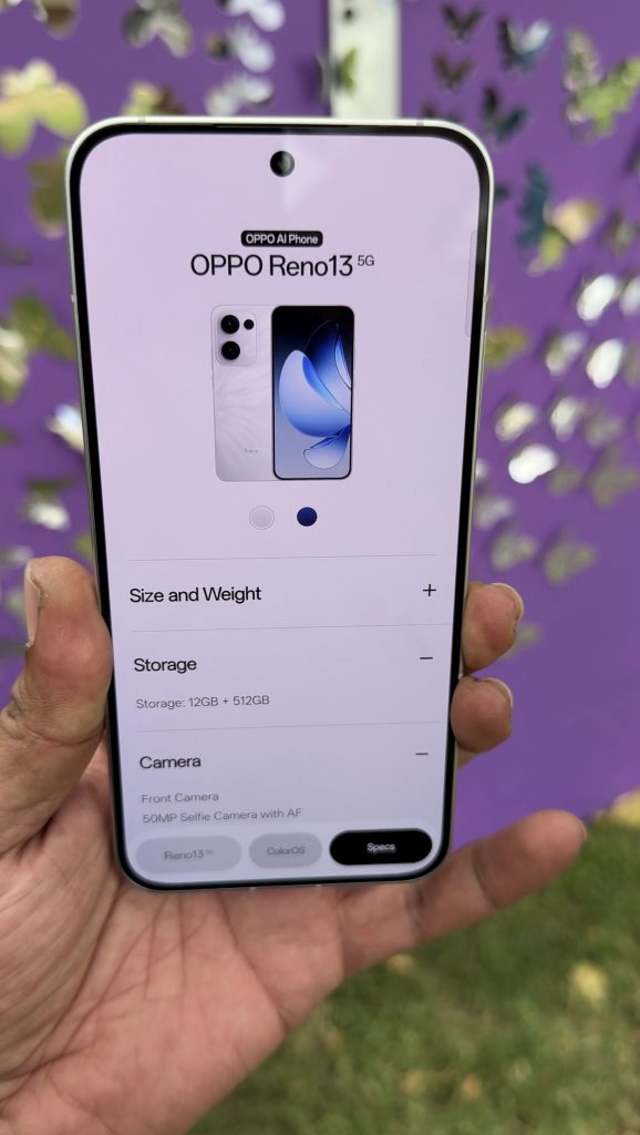 Sitting at the top of the range (for now), the Reno 13 5G is powered by MediaTek’s Dimensity 8350 SoC, with configurations offering 8GB or 12GB of RAM and up to 512GB of storage. Performance should be buttery smooth, especially when paired with its 6.59-inch AMOLED FHD+ display with a 120Hz refresh rate.