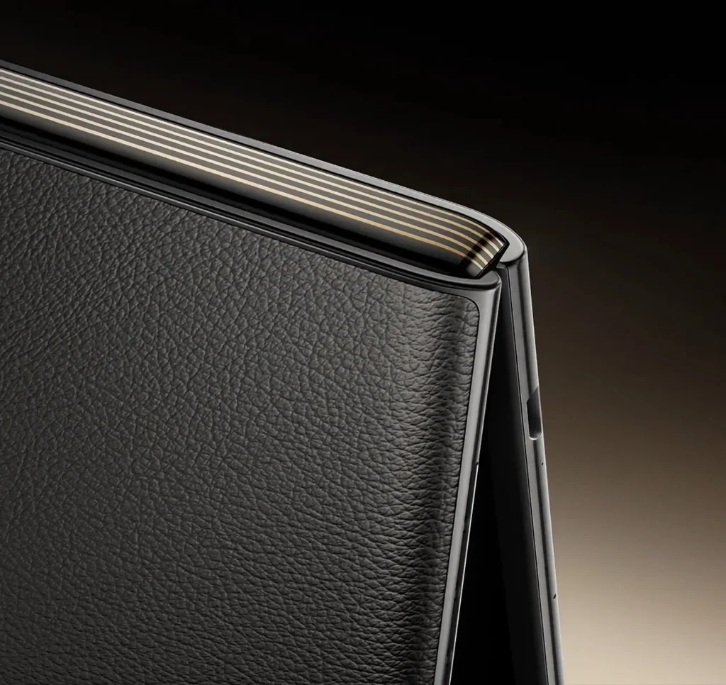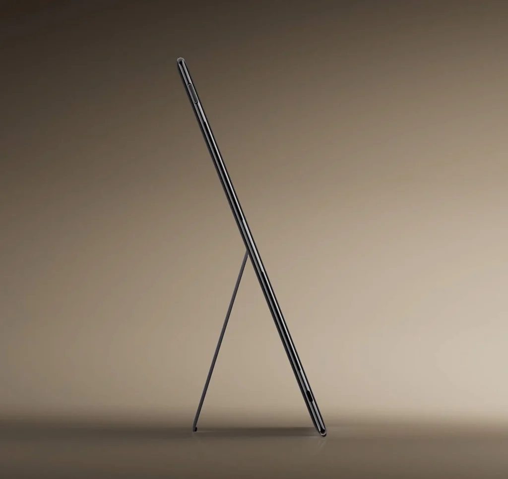The frame includes a carbon fiber support layer and a non-Newtonian fluid buffer to help with shock absorption. There’s even a built-in kickstand so you can angle it however you like. The exterior is wrapped in silicone-coated vegan leather, and Huawei added some neat design touches like subtle gold lines down the spine and unique patterns on the kickstand.
