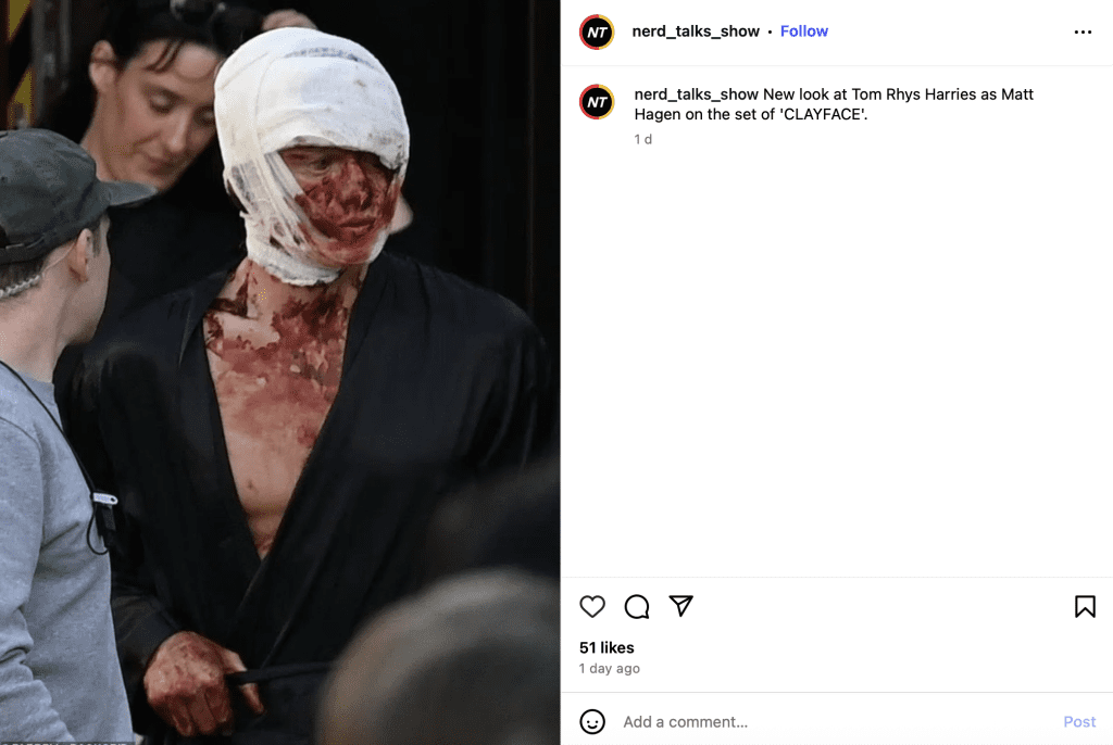 The leaked images also show a bandaged figure exiting a hospital on a stretcher, presumed to be Tom Rhys Harries as Matt Hagen when he’s newly disfigured and vulnerable. Fans of Batman lore will recognise the familiar arc: Hagen, a celebrated actor, suffers an accident that strips him of his beauty, leading him to dabble in a restorative but dangerous chemical that grants him shapeshifting powers, transforming him into Clayface. Visual indicators, like the hospital setting and bandages, strongly suggest that Clayface’s film roots himself firmly in the classic Batman mythos, especially drawing from the animated series’ portrayal.
